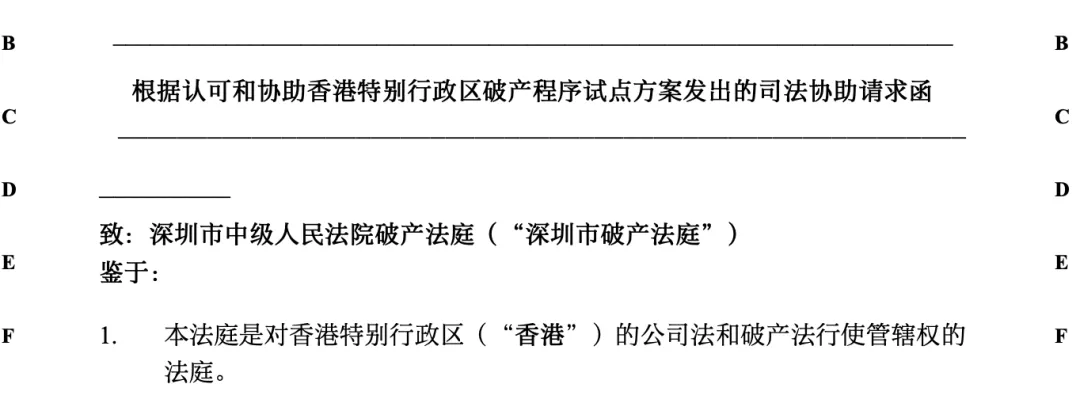 根據申請函,香港高等法院尋求深圳中院為清盤程序及清盤人提供協助,簽發命令并指示: