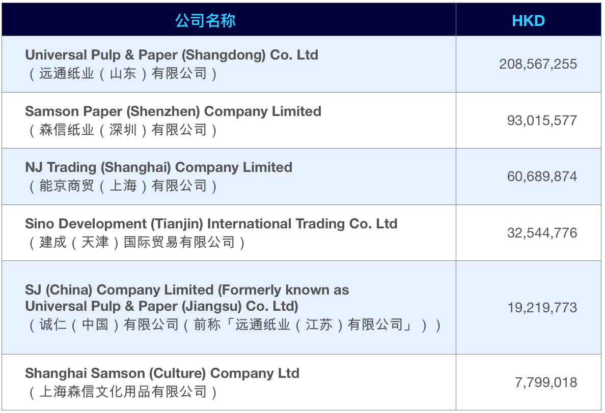 - 一家位于深圳的全資附屬公司,即森信紙業(深圳)有限公司,該公司又在南寧和廈門持有兩家分公司;