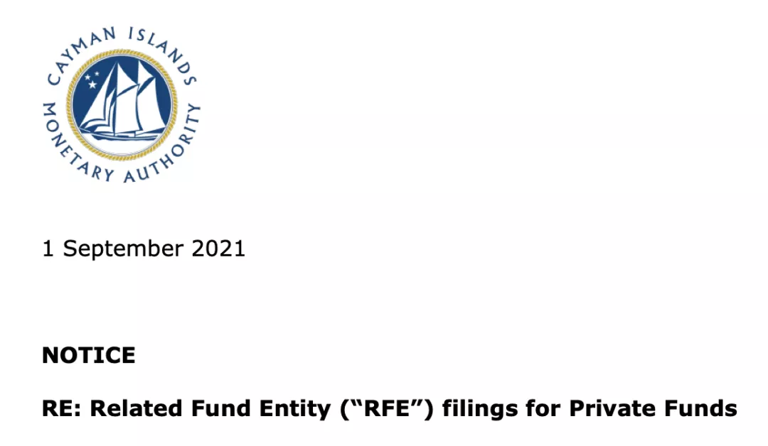 2021年9月1日(前天),開曼群島金融管理局(CIMA)發布了“關于私募基金【相關基金實體存檔】的 通知”(Re:Related Fund Entity (RFE) fillings for Private Funds,“通知”),要求私募基金對其相關實體信息進行存檔。RFE表格存檔是開曼私募基金周年申報(Funds Annual Return,“FAR”)存檔文件的補充。在此前的2021年7月9日,CIMA發布了FAR,要求私募基金滿足「私募基金(周年申報)規則,2021(Private Funds (Annual Returns) Regulations, 2021 ,“規則”)」的信息申報和存檔。