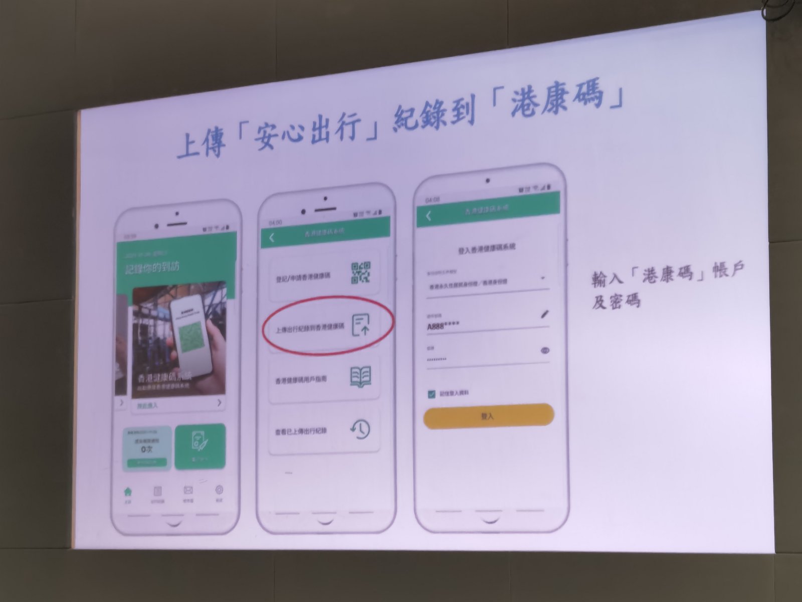 用戶12月10日起升級到「安心出行」3.0版本后,即可看到新增一個「香港健康碼系統」的界面,點擊「上傳出行記錄到香港健康碼」,即可將「安心出行」的出行記錄上傳到「港康碼」系統。