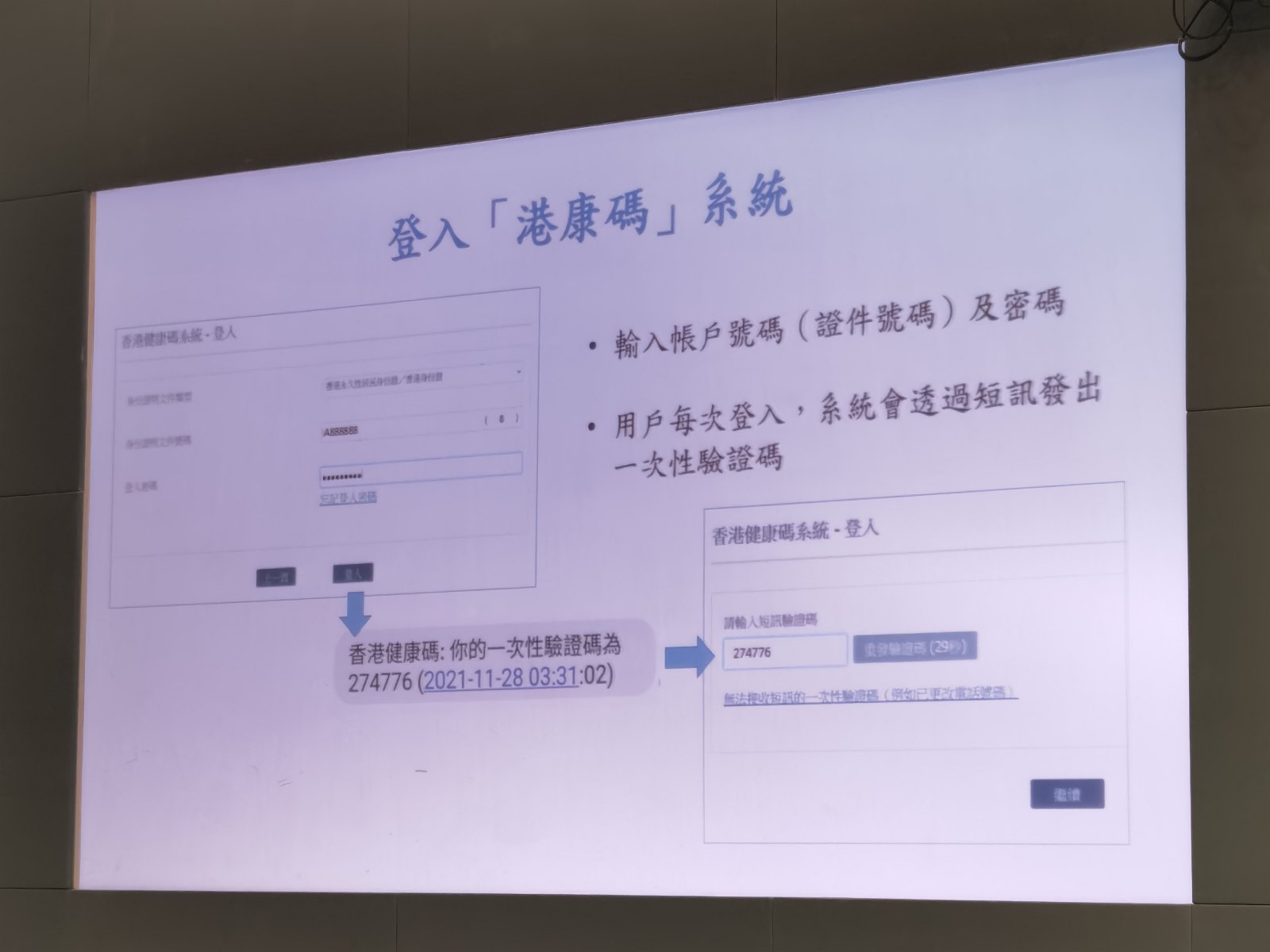 啟動賬戶后系統會提示用戶檢查登記電話號碼是否正確。 其后每次登入會發出短訊到登記電話號碼核實身份。 用戶登入港康碼系統時,須輸入賬戶號碼(證件號碼)及密碼;用戶每次登錄,系統會透過短訊發出一次性驗證碼。