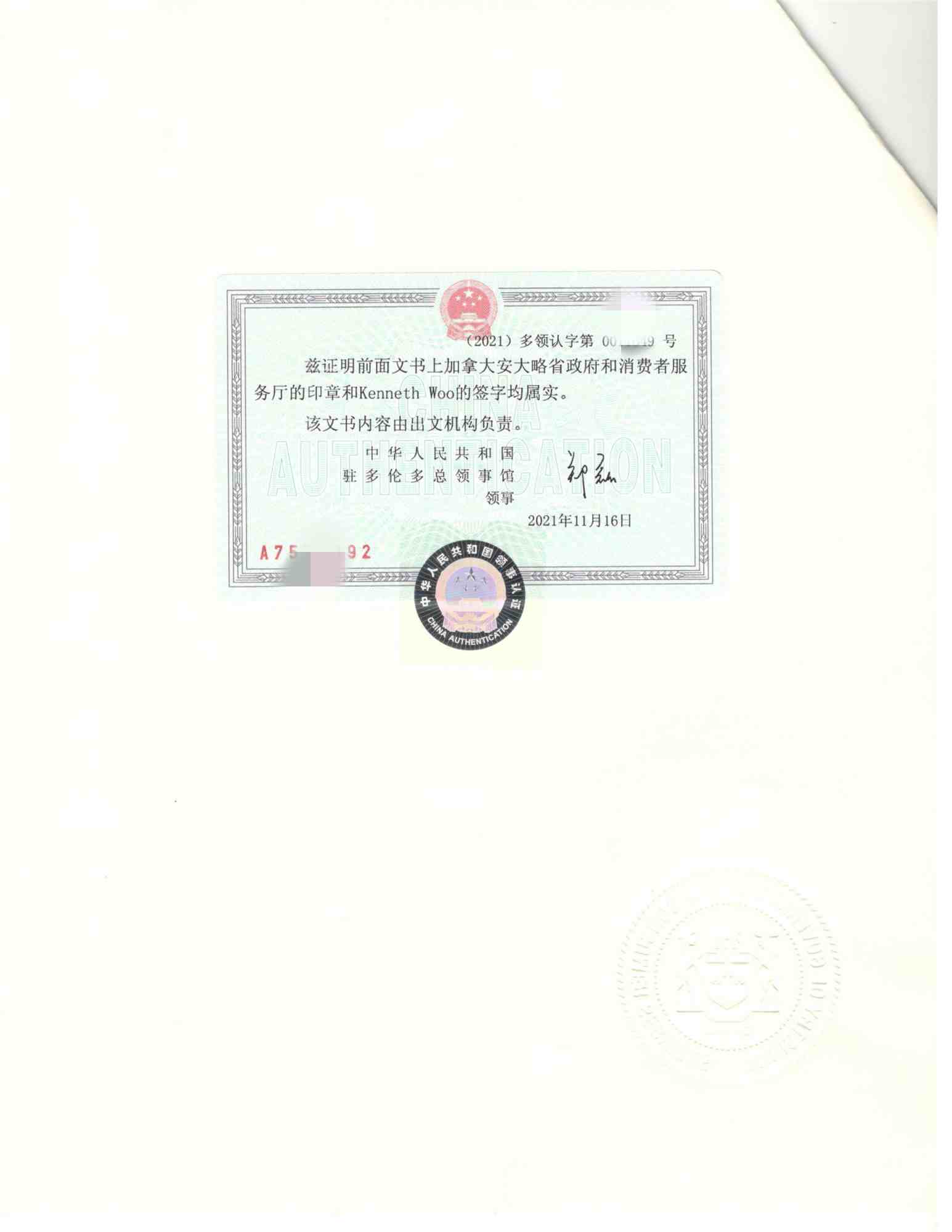 先由加拿大國際公證律師對文書進行真實性核實,并加蓋公證的印章
