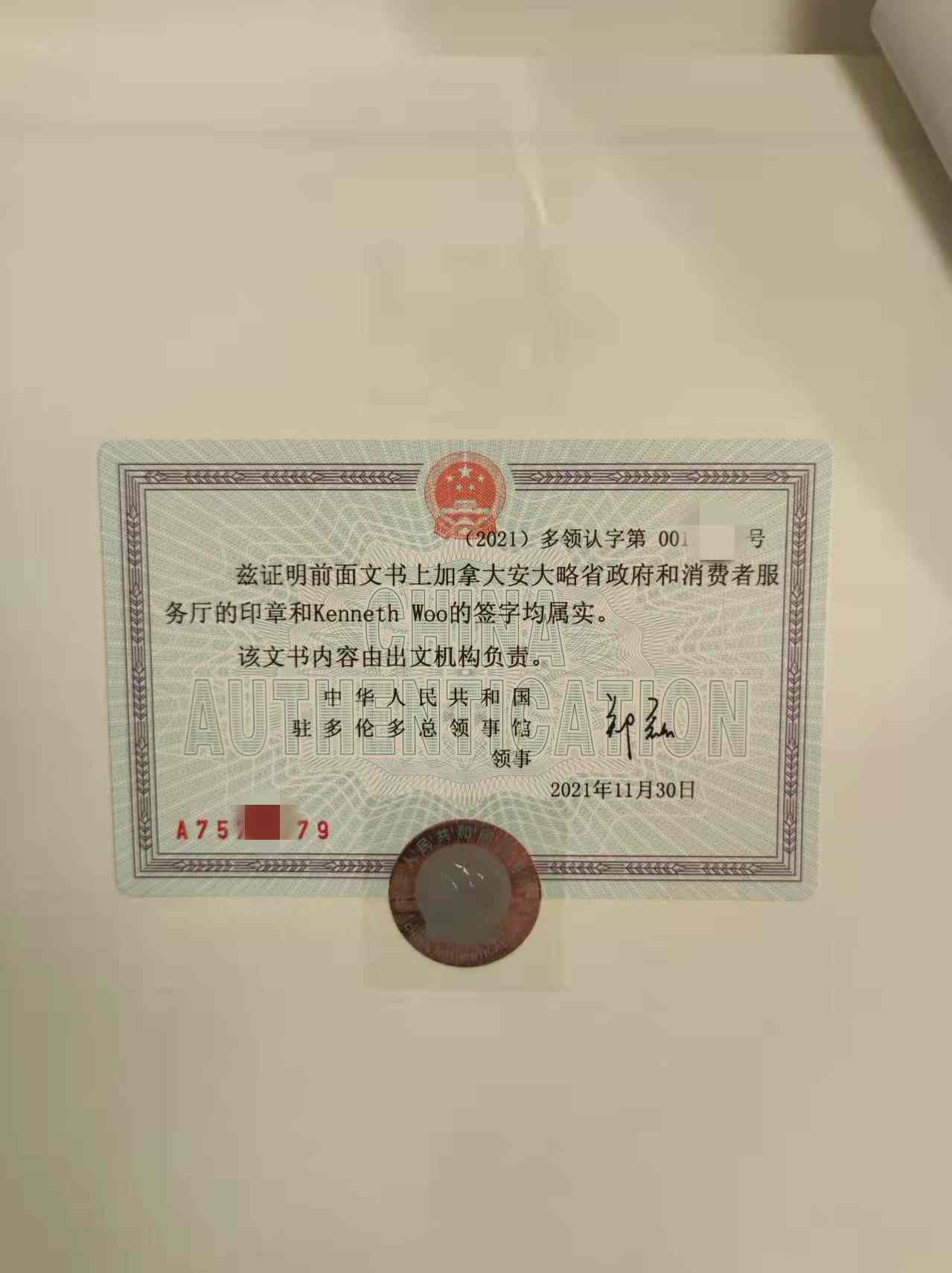 3.將加拿大出生證在省政府認(rèn)證好后再到中國駐加拿大使館認(rèn)證。