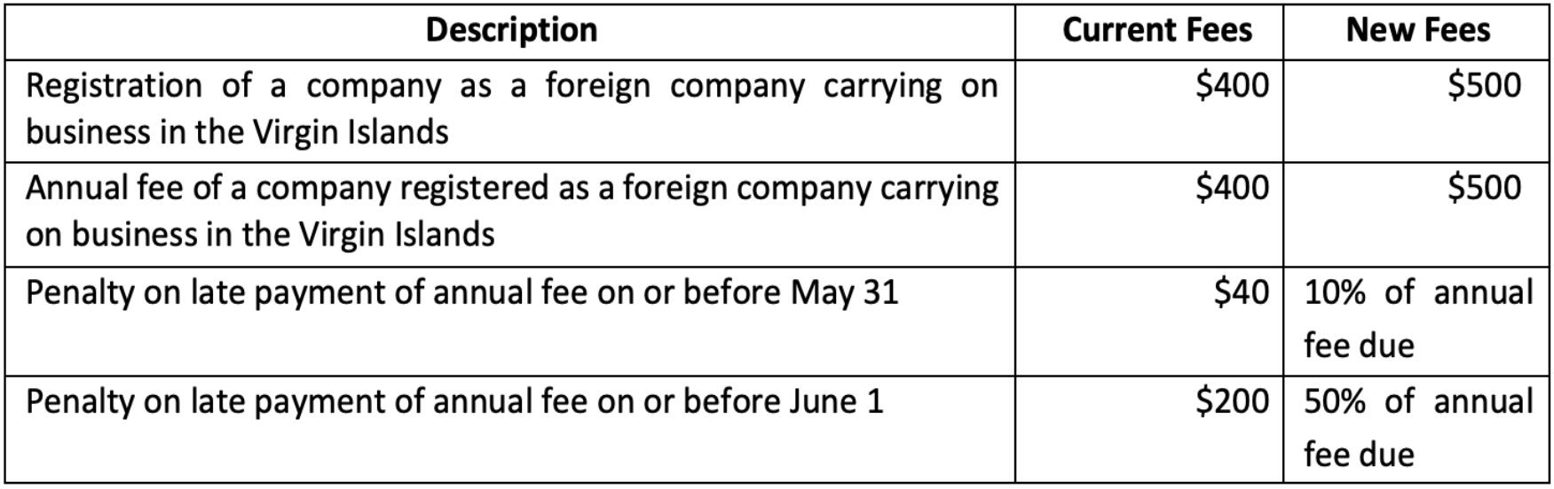 New BVI Business Companies Amendment to Introduce Fee Changes