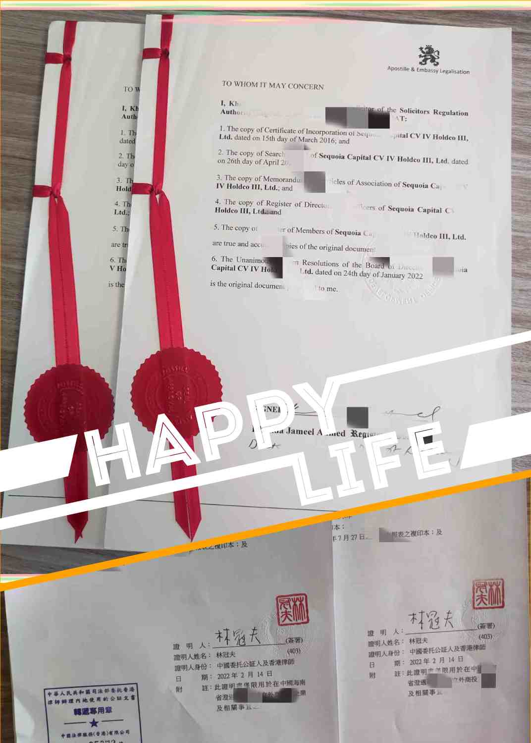 英屬開曼群島公司設立代表處公證認證文件如下: