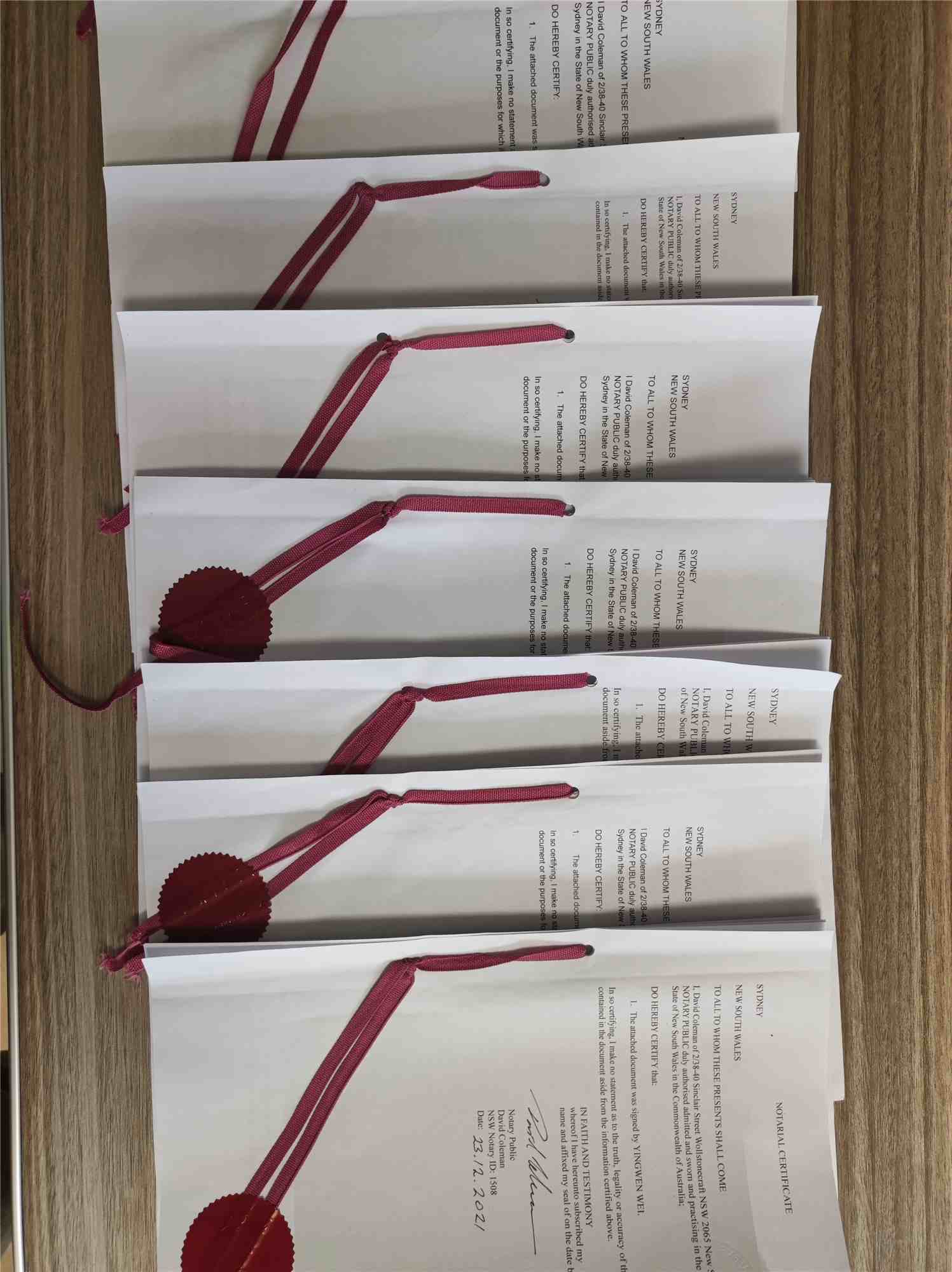 認證流程:澳洲公證人公證,澳洲外交部認證,中國駐澳洲使館認證