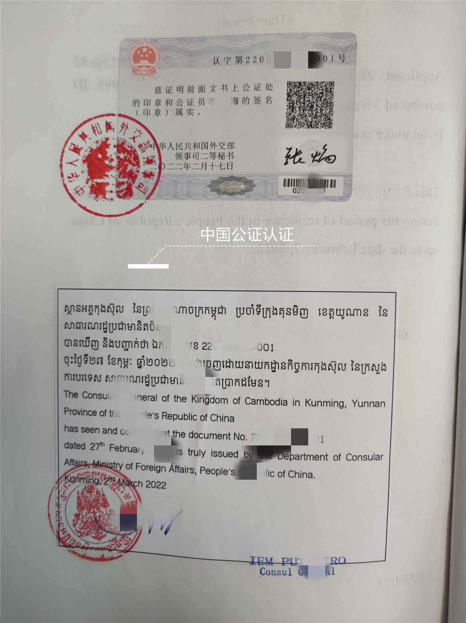三、拿到公證書之后還要做好駐華使館認證!