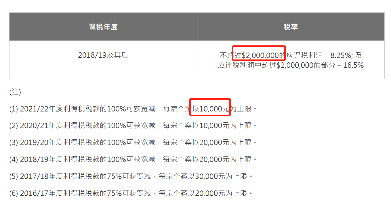 香港利得稅減免1萬答