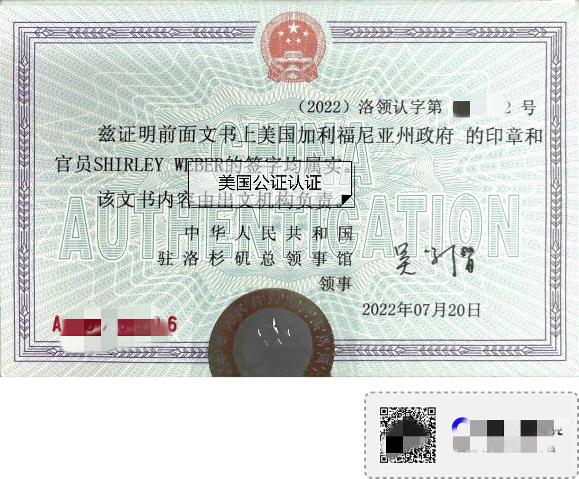 第三步:中國駐美國使館認證,受理經過上兩級確認之后的文書,不對文書內容負責,確認公證律師和外交部印章或簽字的屬實性。