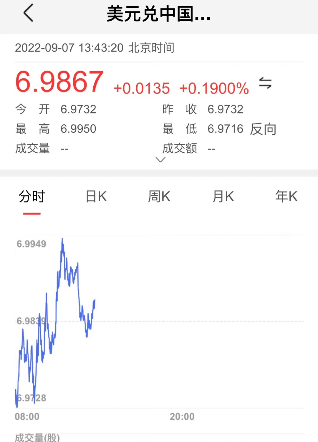 今天在岸人民幣和離岸人民幣兌美元雙雙破7了 答