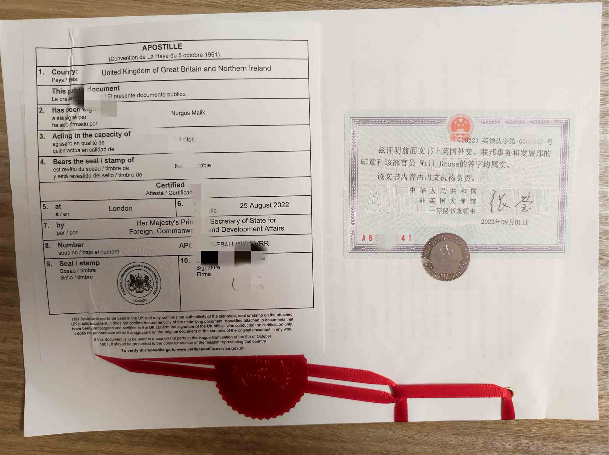 第四步最后把文件送往中國(guó)駐英國(guó)使領(lǐng)館進(jìn)行認(rèn)證