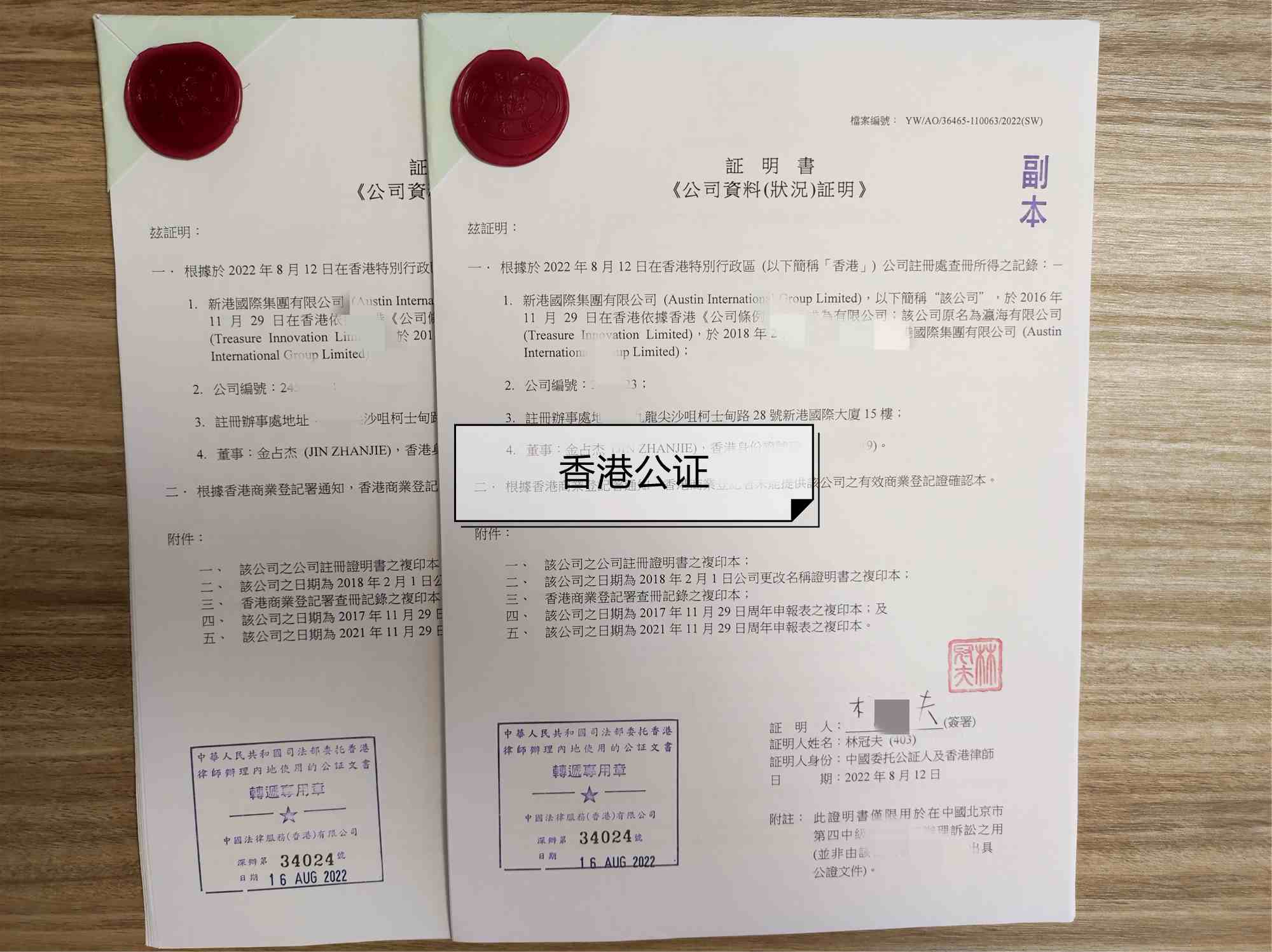 隨著香港公司參與內地經貿文化往來的日益深入,香港公司和內地公司或個人之間的糾紛也隨之增多,香港公司在內地法院訴訟的也增加,這時法院要求提供香港公司公證文件。